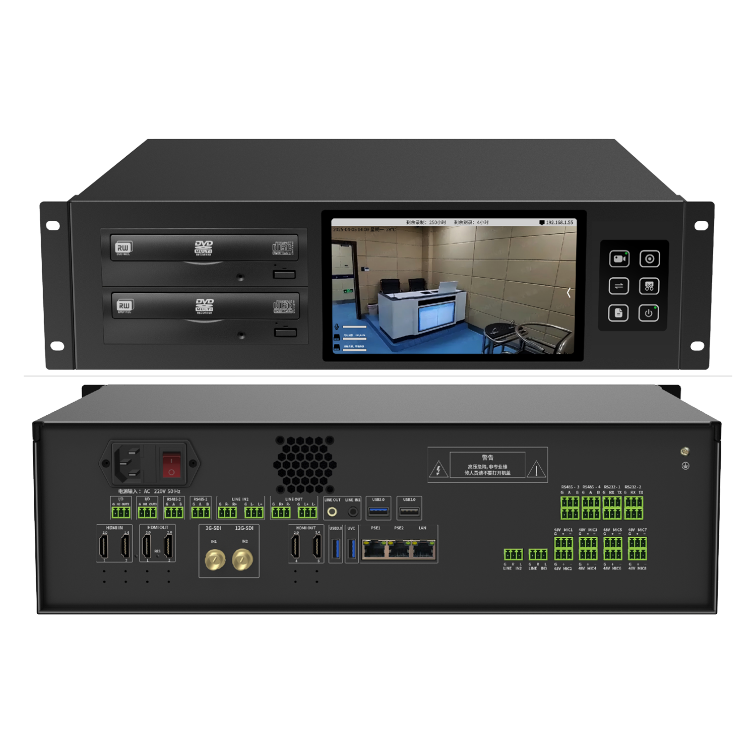 一款集音視頻采集、音視頻編解碼、音視頻處理、視頻錄制、視頻點(diǎn)播、視頻直播、視頻導(dǎo)播、遠(yuǎn)程視頻會議、運(yùn)維管理、POE、HID反向控制、12G-SDI輸入、4屏異顯、4K60編解碼、光盤刻錄等功能于一體的設(shè)備。設(shè)備采用工業(yè)級別高性能低功耗ARM架構(gòu)四核處理器,基于開源穩(wěn)定的嵌入式Linux操作系統(tǒng)設(shè)計開發(fā),確保系統(tǒng)可靠穩(wěn)定。該產(chǎn)品主要用于包括但不限于影像調(diào)度、視頻錄制存儲、視頻示教、視頻直播等功能;面對各類應(yīng)用場景,通過該設(shè)備實(shí)現(xiàn)音視頻相關(guān)需求,為用戶提供一體化解決方案。